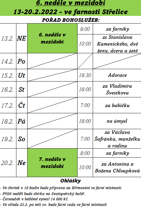 • Nedělní oznamování