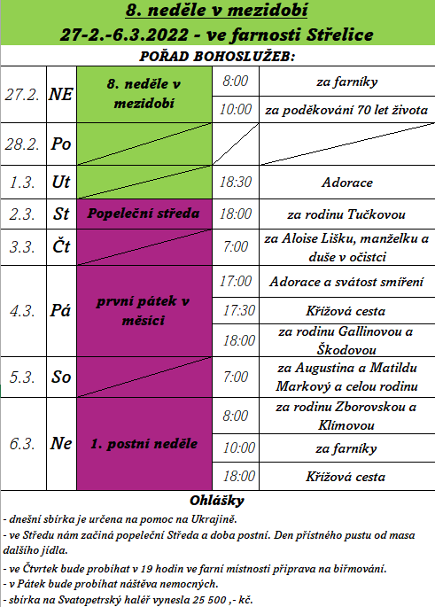 • Nedělní oznamování